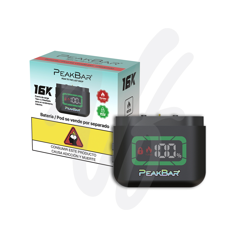 La batería intercambiable PEAK BAR 16K es la solución ideal para usuarios y distribuidores que buscan flexibilidad, mayor vida útil del sistema y una experiencia de vapeo continua mediante el reemplazo del POD sin necesidad de adquirir un equipo completo.